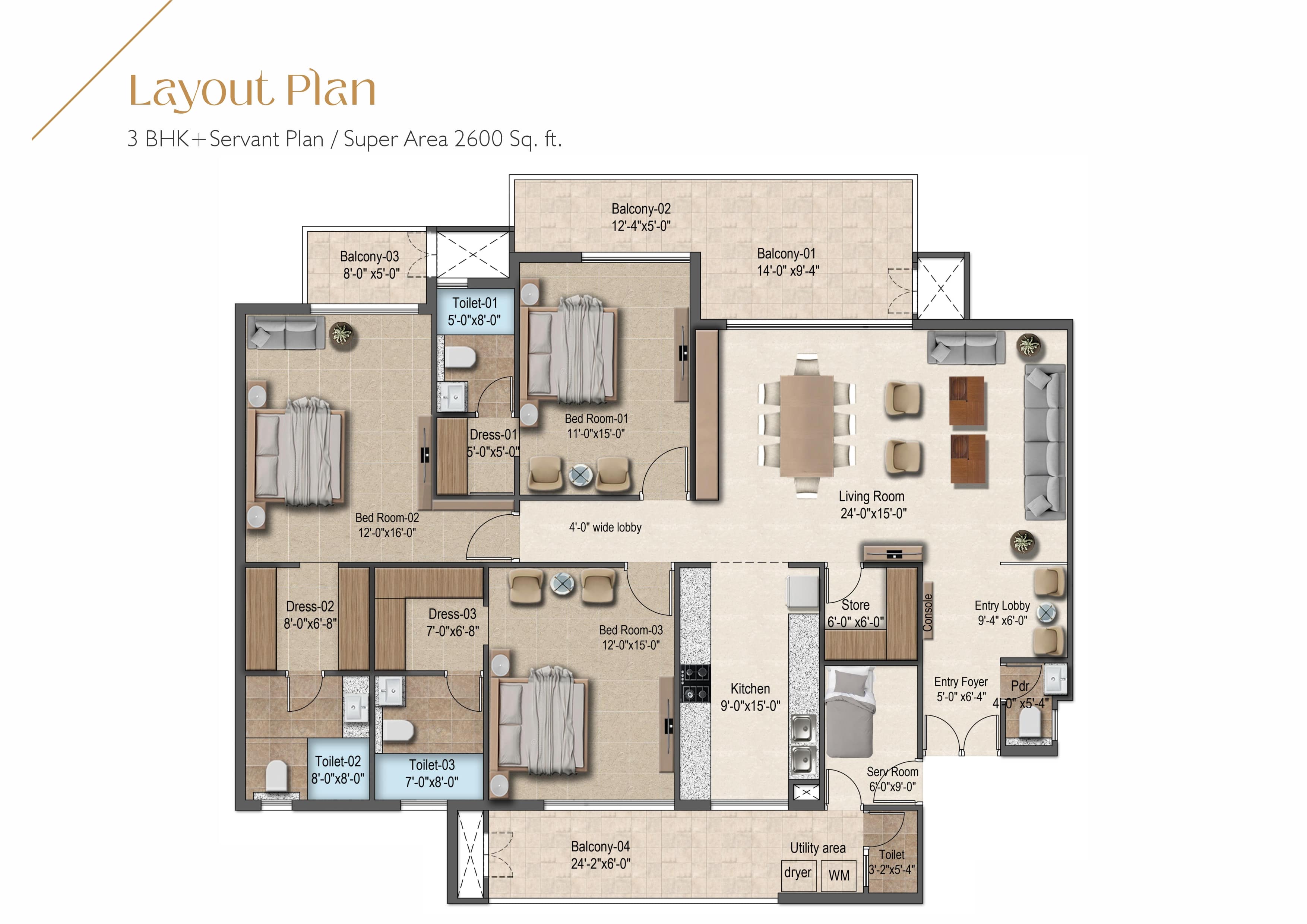 3 BHK + Servant