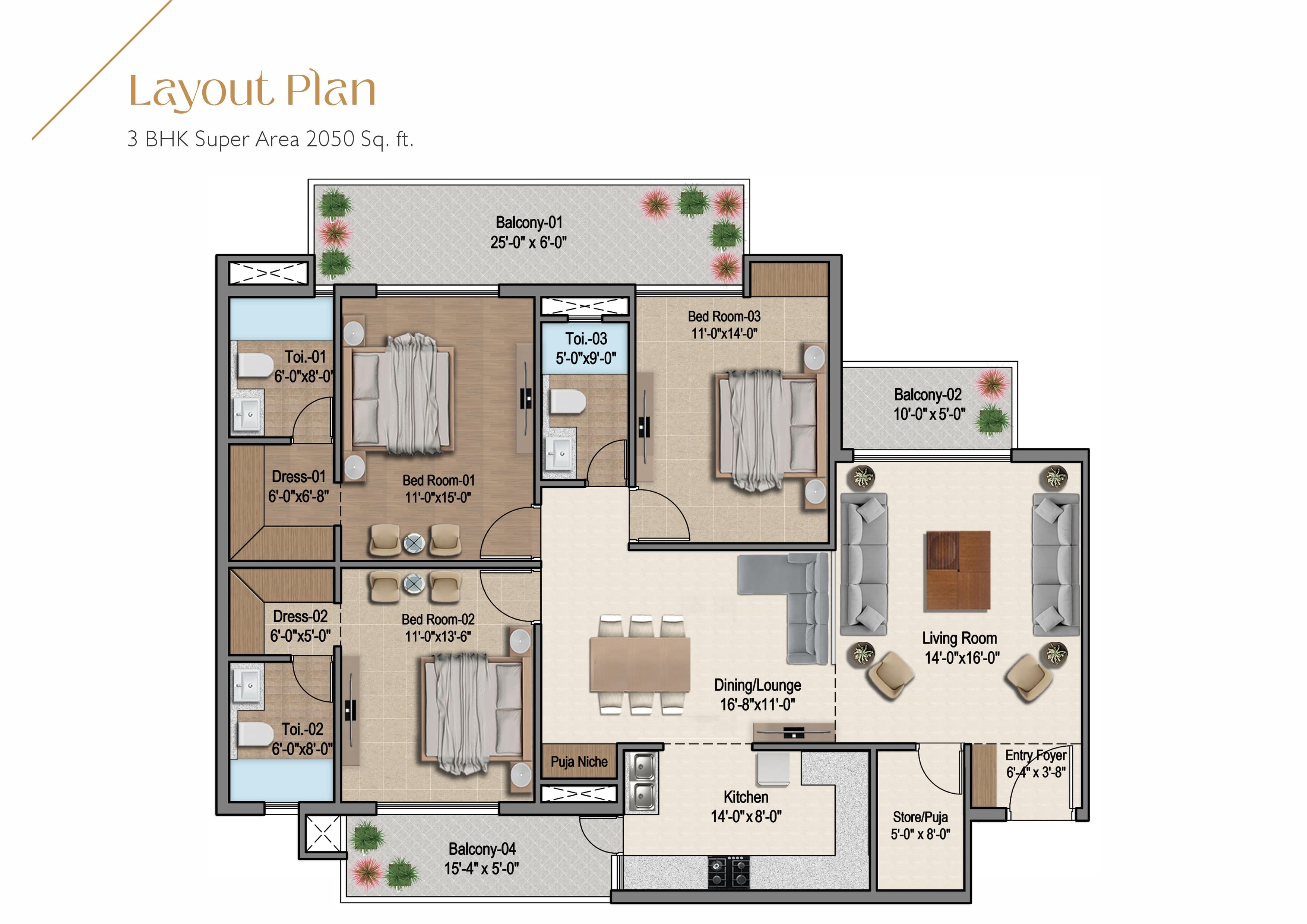 • Super Area -- 2050 Sq. Ft.